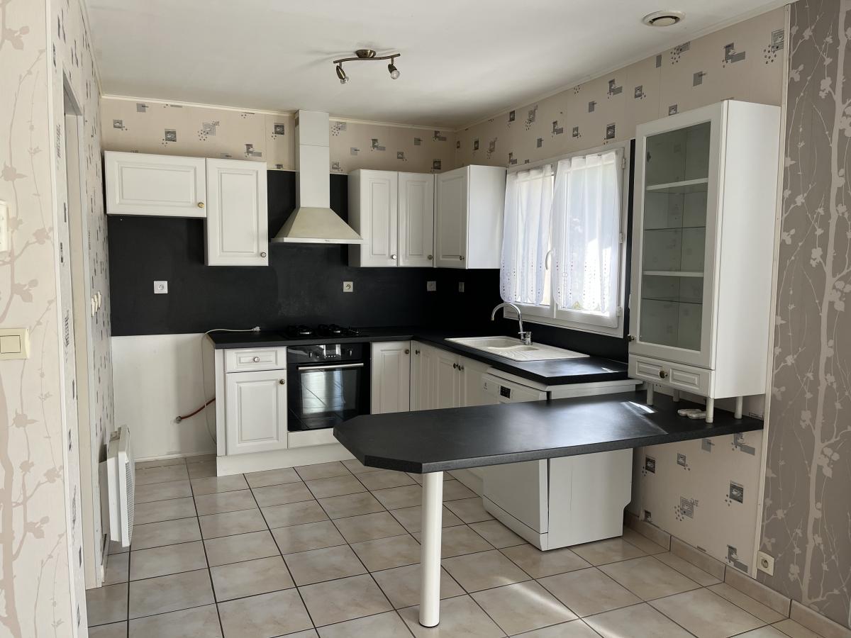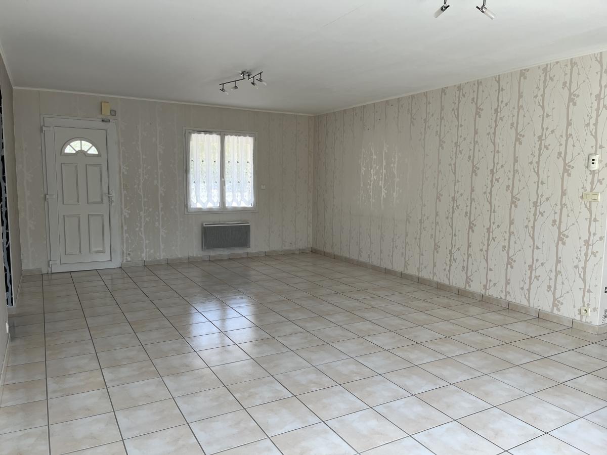 - une pièce de vie, une cuisine ouverte aménagée, un couloir, trois chambres avec placards, une salle d'eau, un WC.