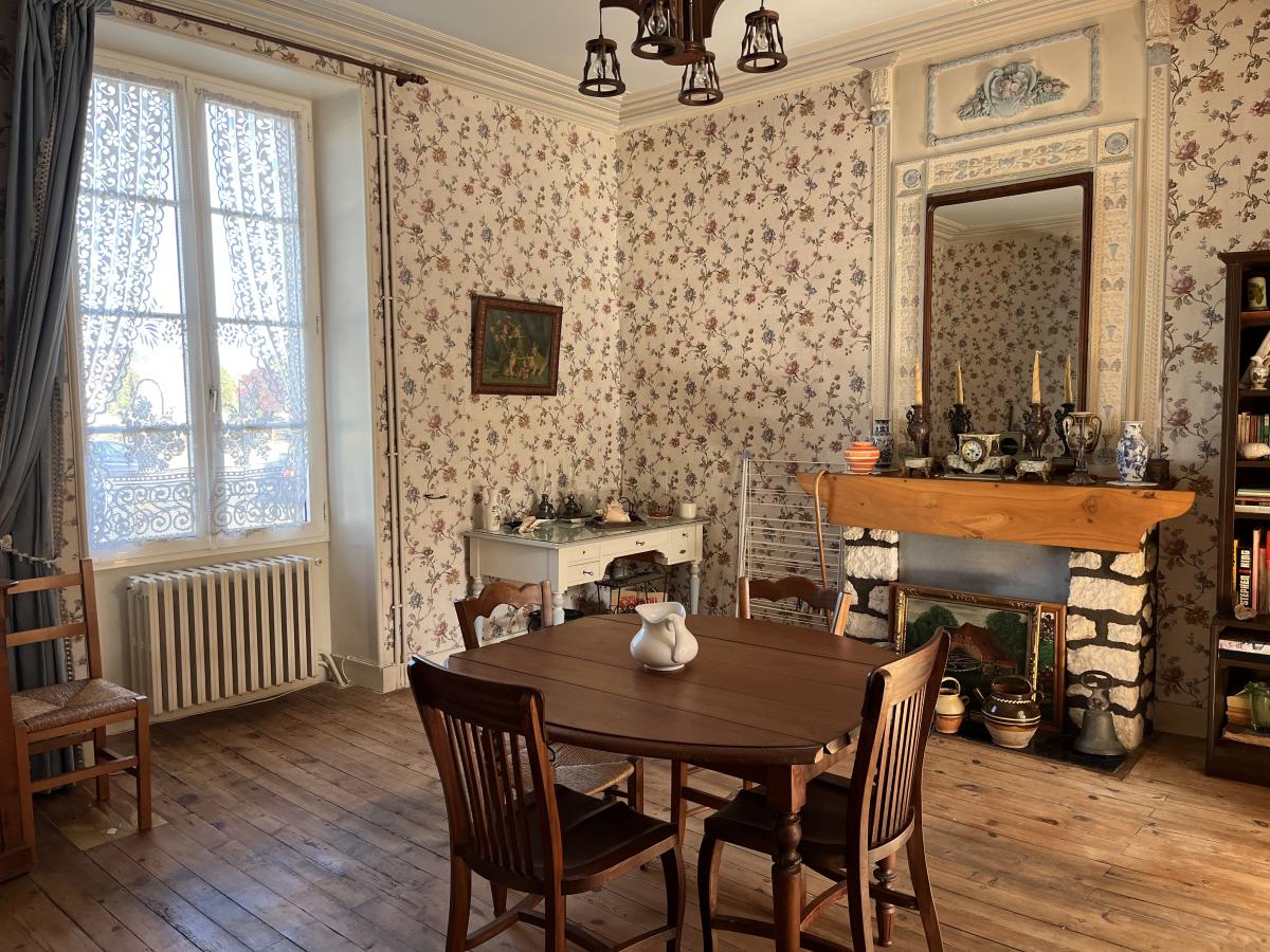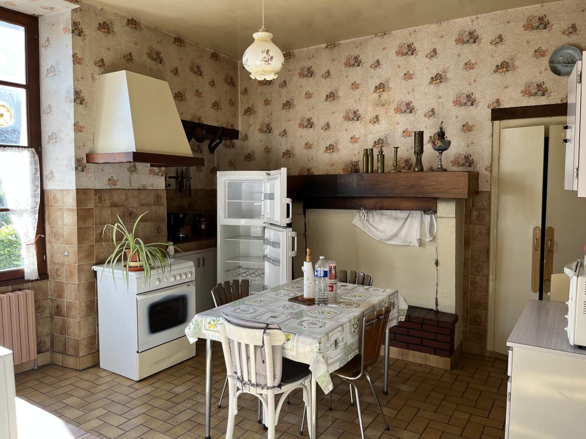 - en rez-de-chaussée : une entrée, un salon avec cheminée, une salle à manger, une cuisine avec cheminée, une chambre, une salle de douches, un WC.